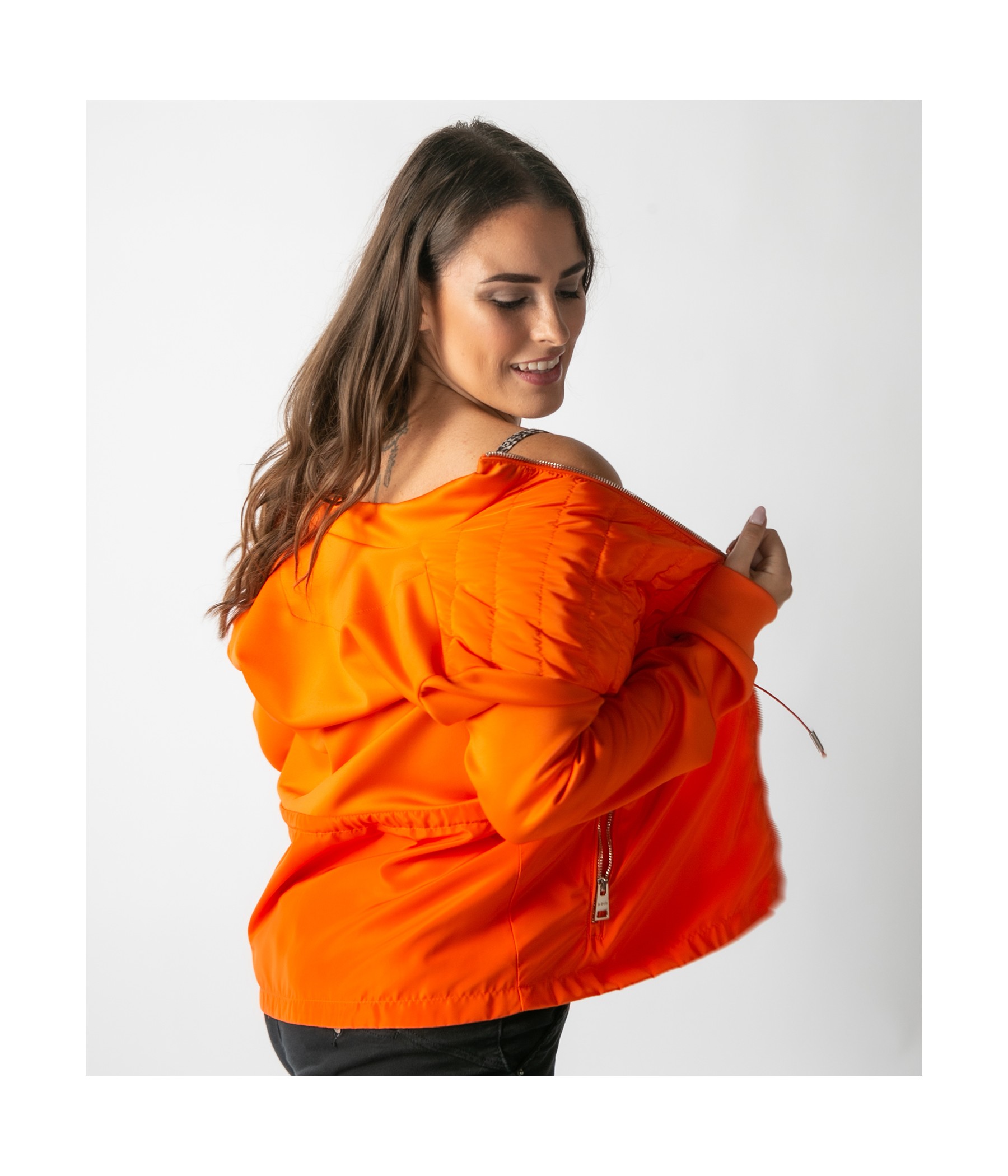 Leichte und vielseitige Frühlingsjacke. Sie hat eine taillierte, aber bequeme Silhouette, ideal für den Freizeitstil.
