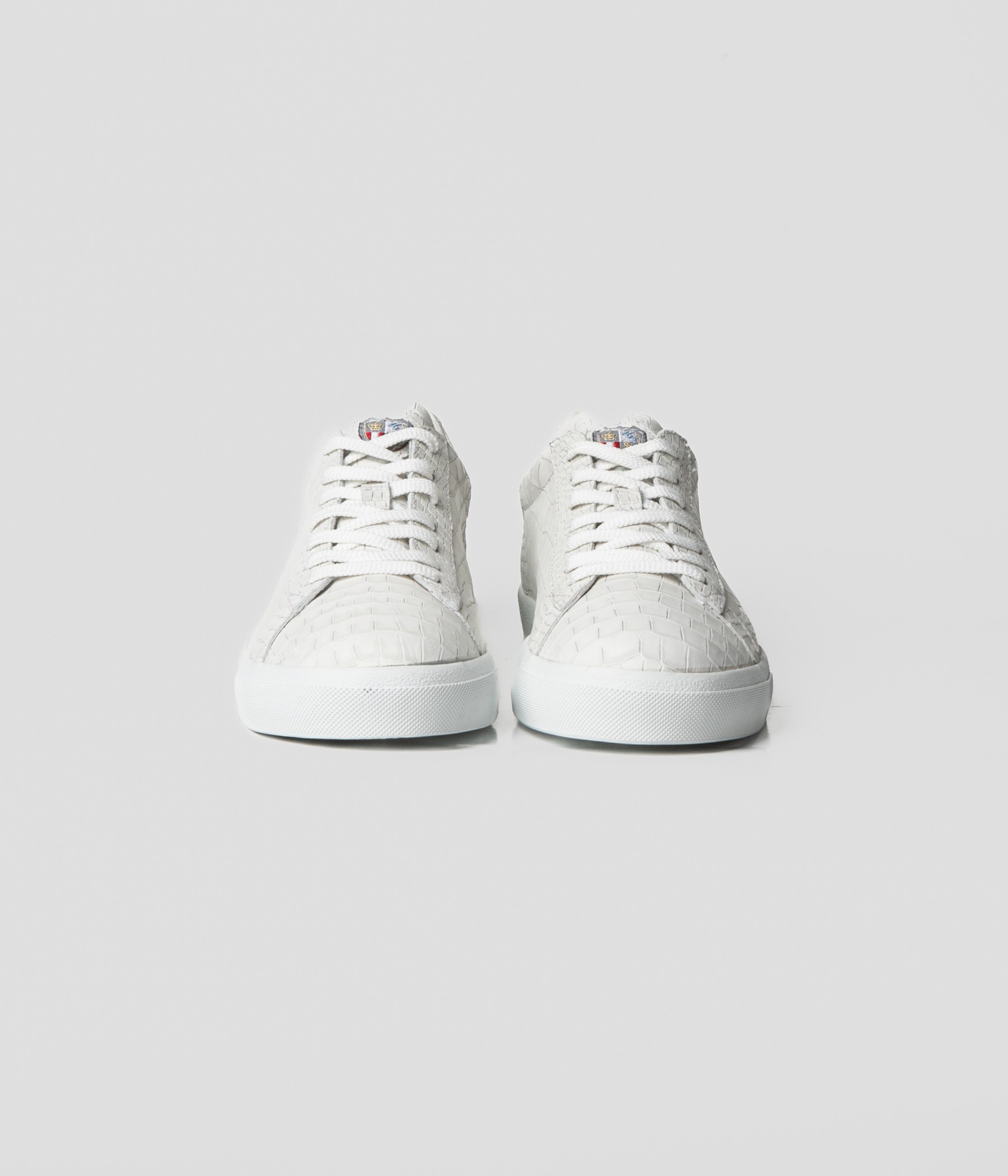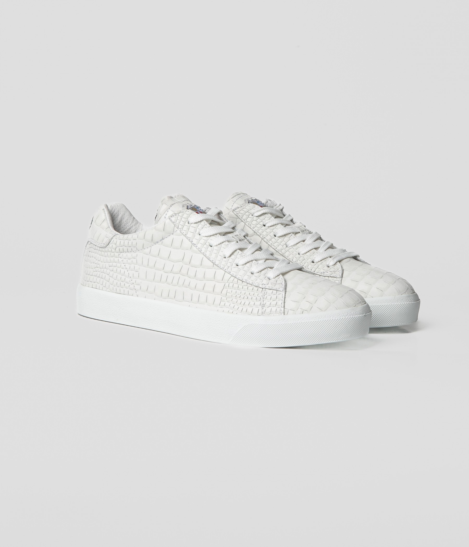 Herren-Sneakers aus weißem Leder in Reptilienoptik