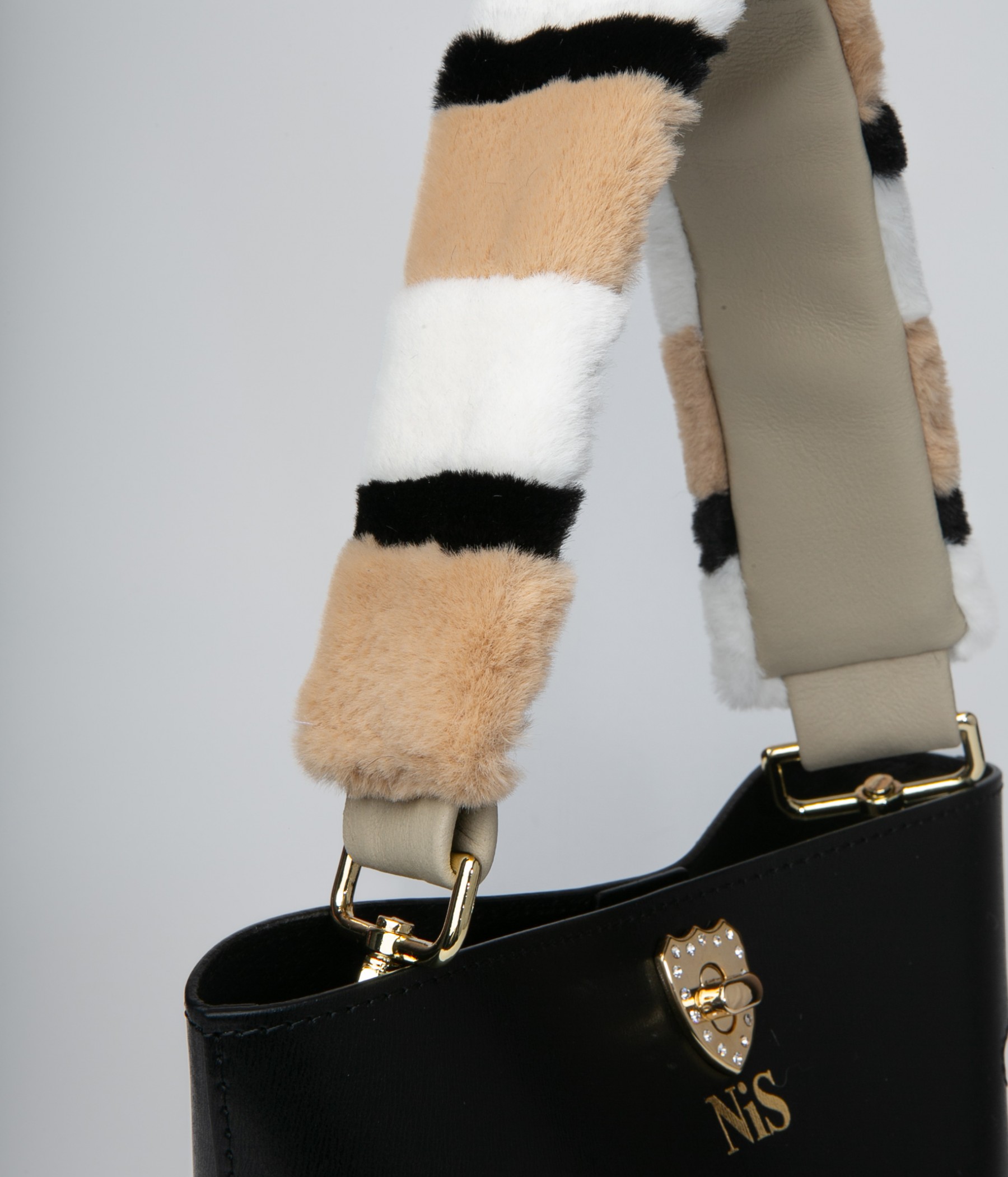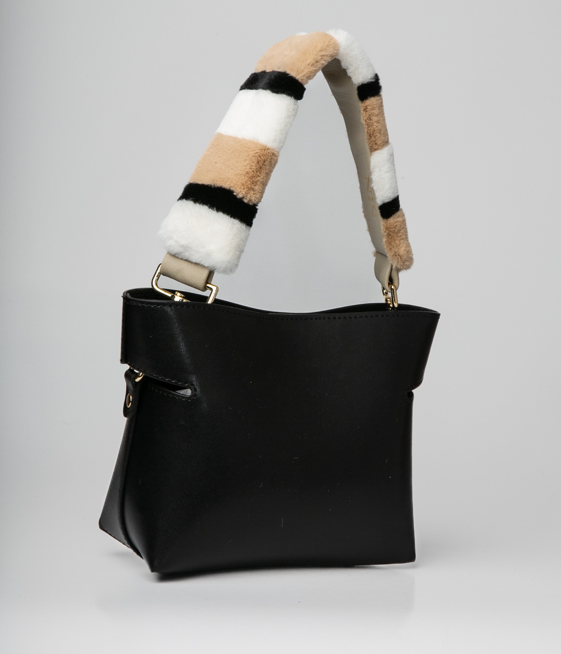 The faux fur handle is removable. Thanks to the handle you will be able to carry the bag by hand.