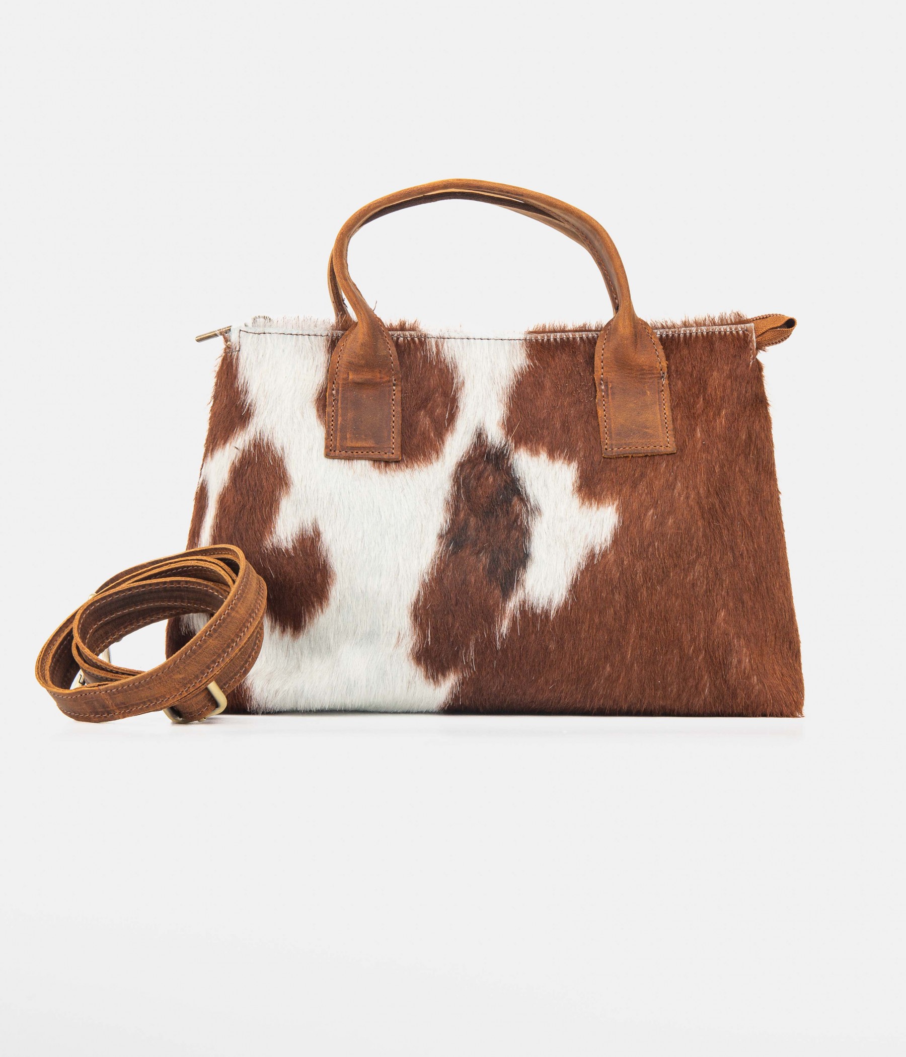 You can carry it by hand or crossbody thanks to the adjustable, removable shoulder strap and leather handles.