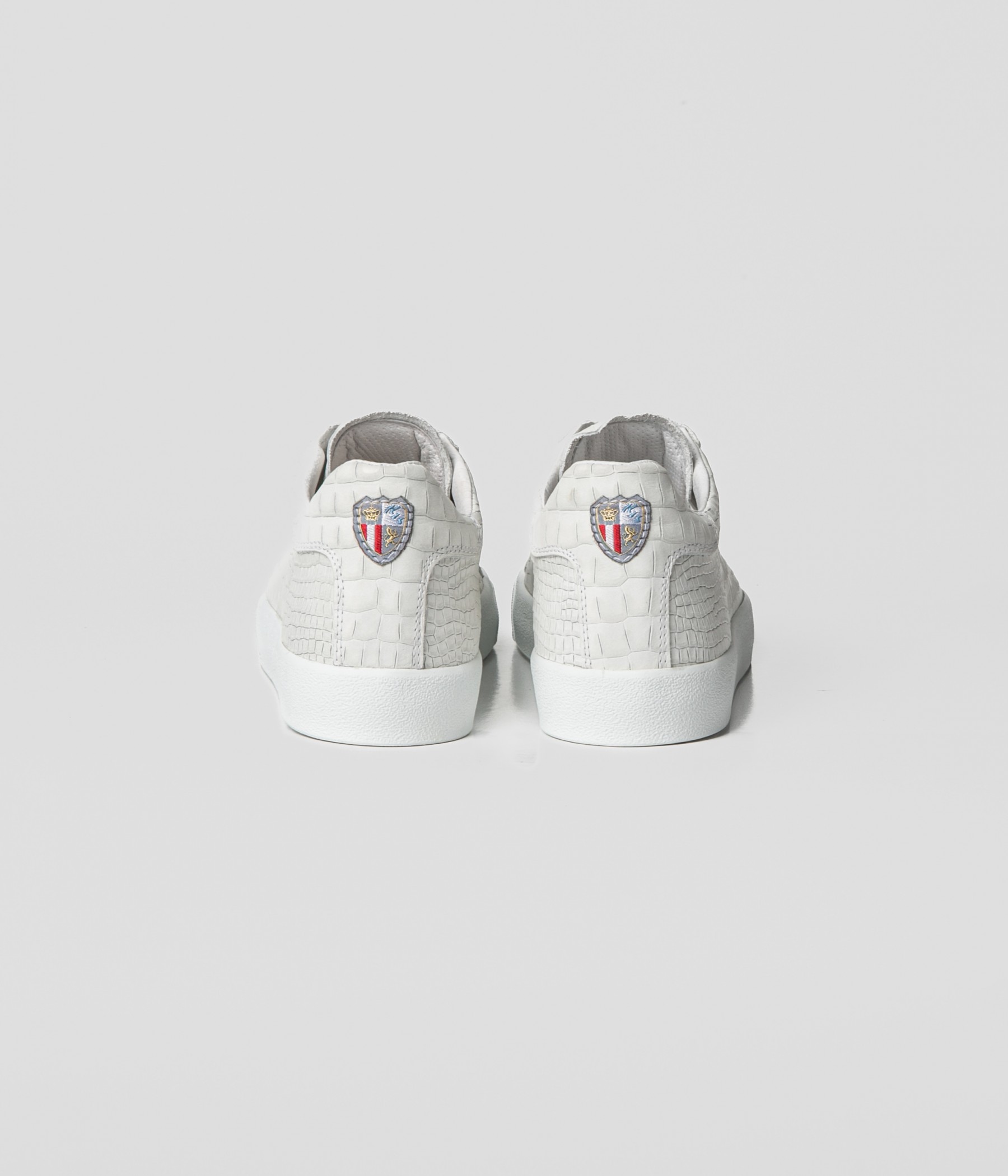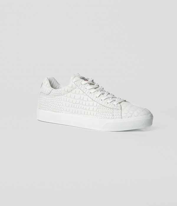 Perfect balance of style and comfort with these men's white reptile-effect leather sneakers.