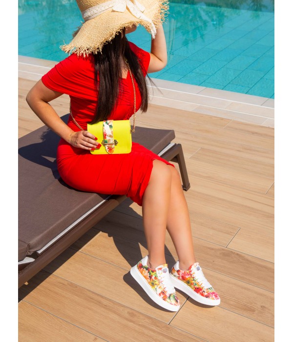 Lively and whimsical made-in-Italy sneakers in genuine flower-printed leather.