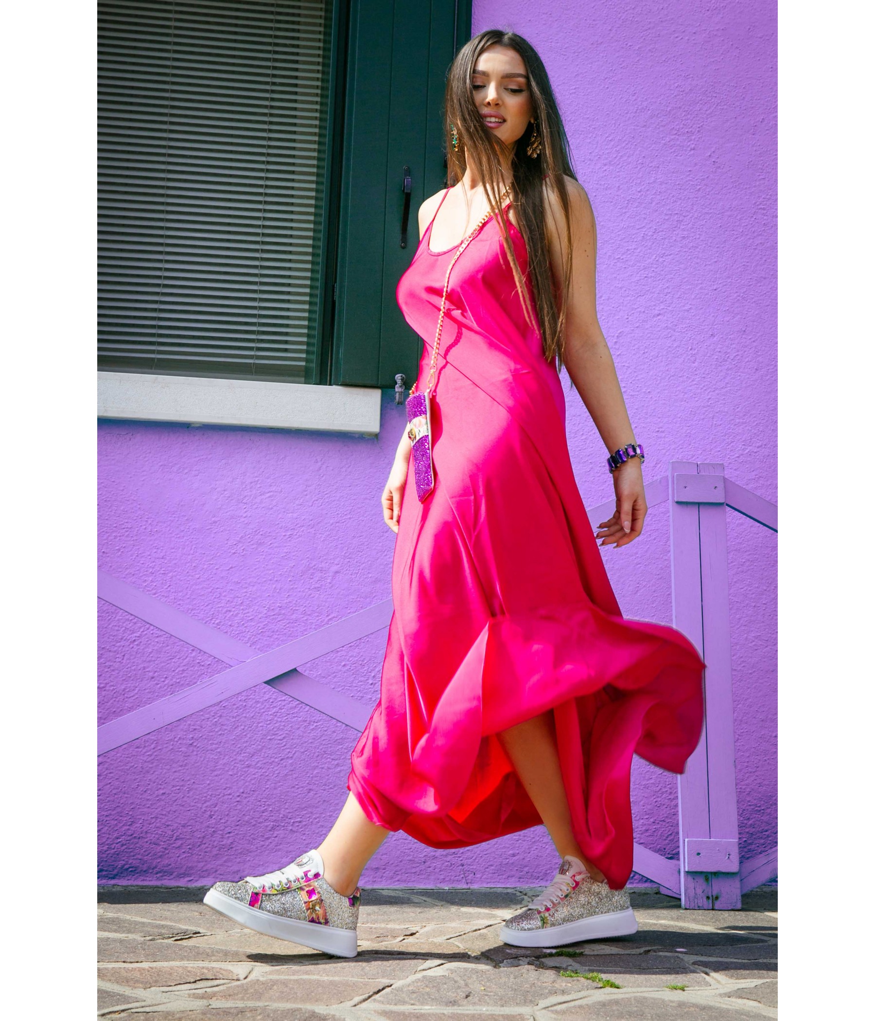 2429382V/2 GLITTER PLATINO/FIORI FUCSIA