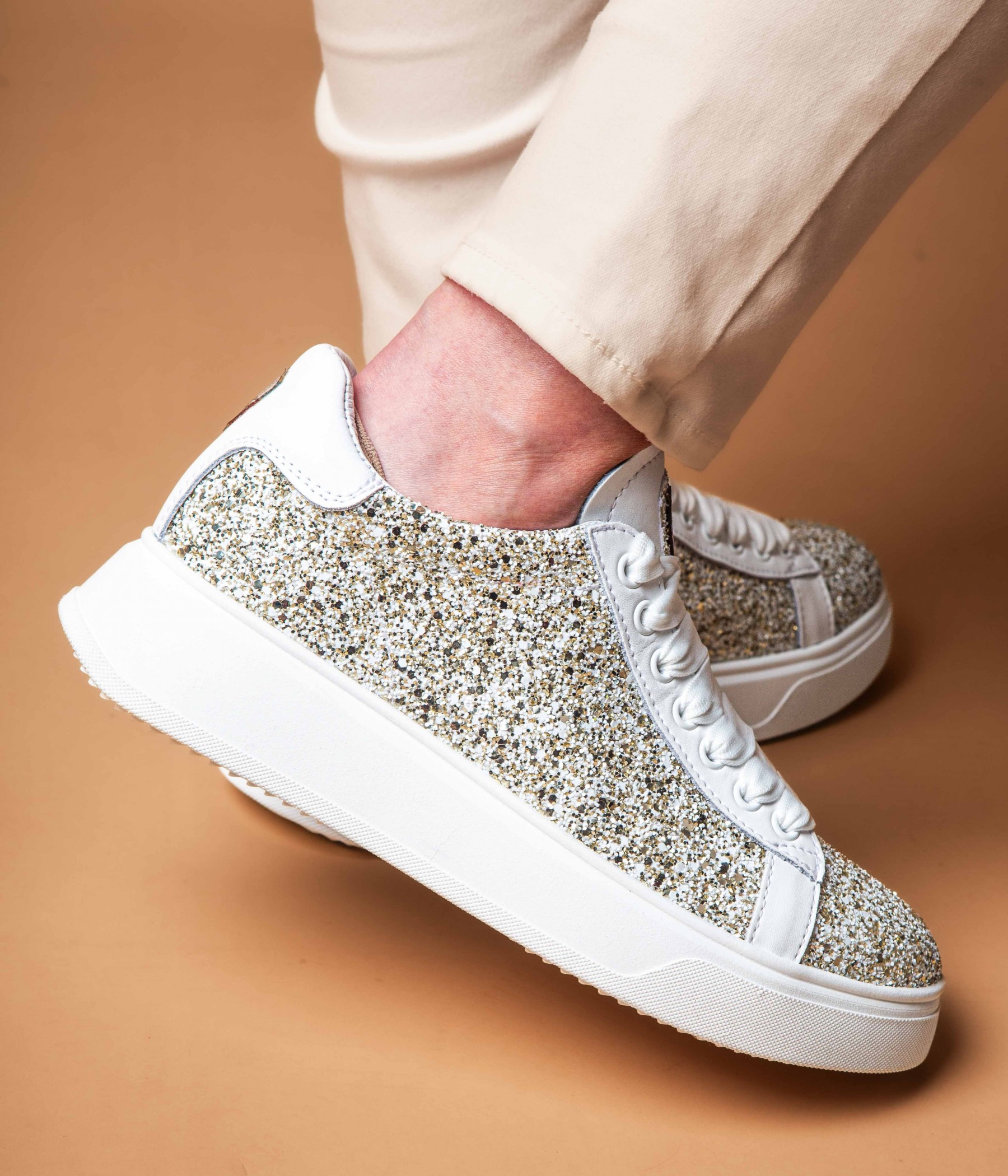 While this provides a sense of durability for the shoes, it is important to avoid contact with sharp or abrasive objects and surfaces as abrasion can cause loss of glitter.
