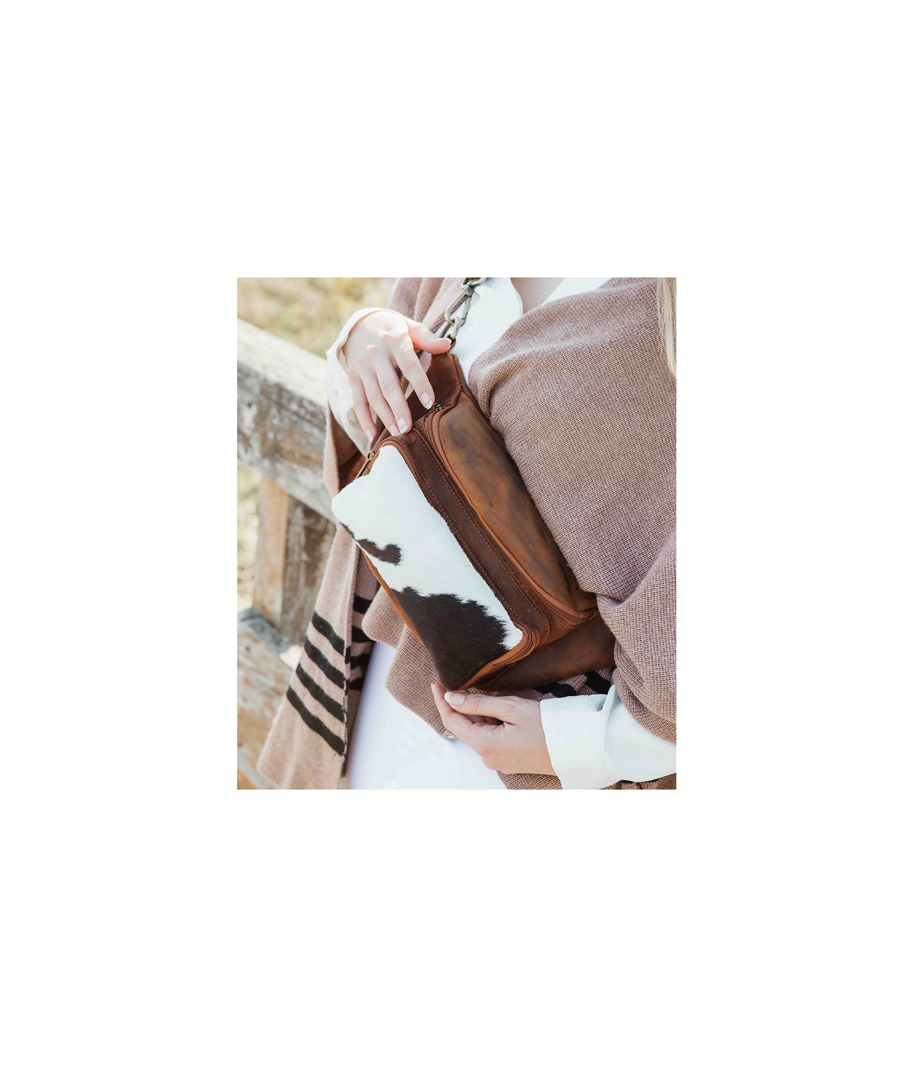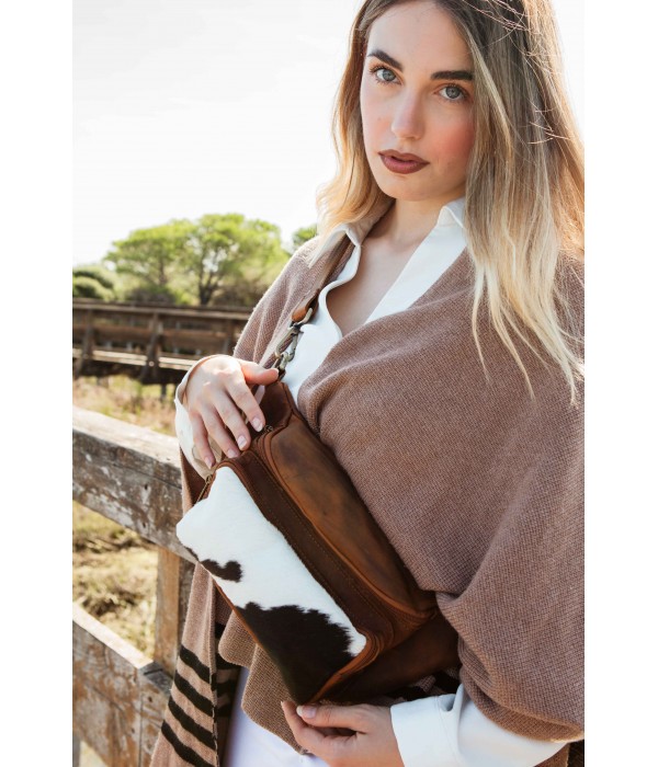 La particolare texture dell'inserto in cavallino fa sì che ogni borsa sia un pezzo unico, aggiungendo un tocco di stile boho-chic o country al tuo look.