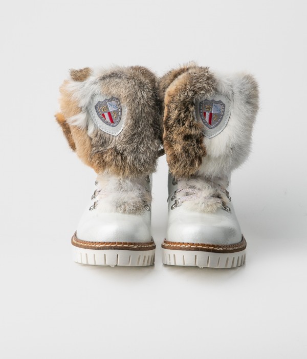 Stivaletto in pelle e riporti in pelliccia lapin.