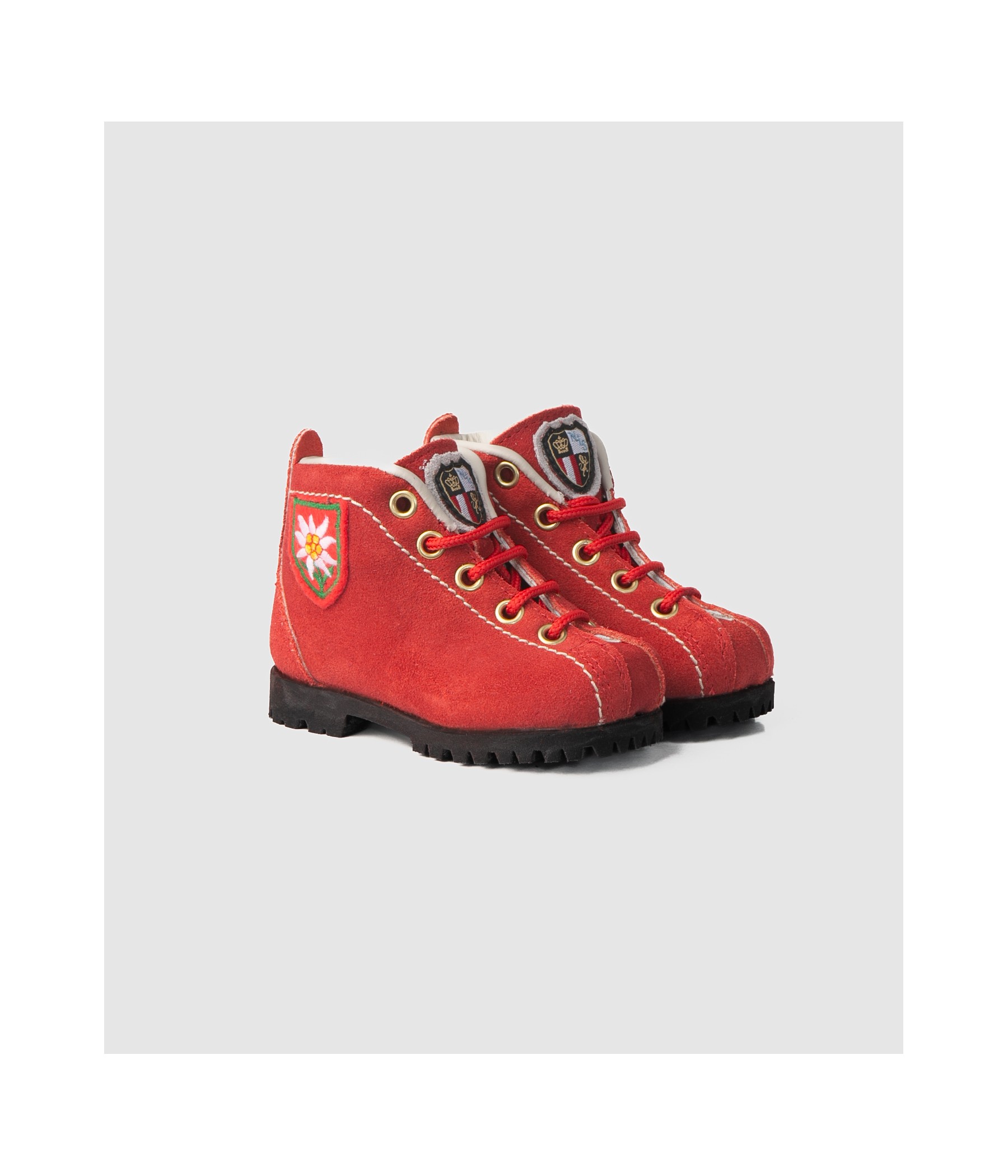 Perfetto per i piccoli avventurieri, questi scarponcino in morbida pelle scamosciata rossa è il compagno ideale per ogni esplorazione all'aria aperta.