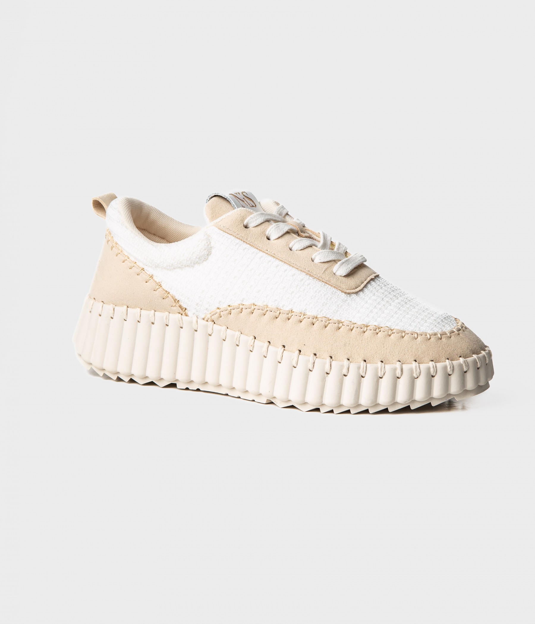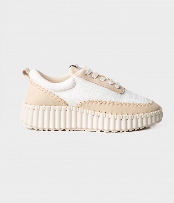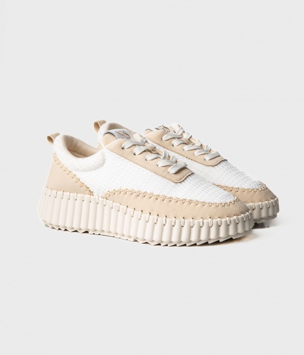 Sneakers in mesh avorio e riporti scamosciati beige.